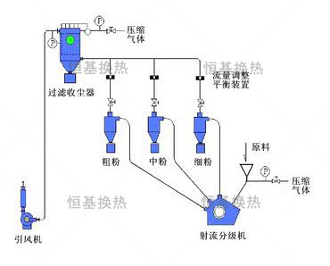 射流分級(jí)機(jī)具有非常準(zhǔn)確和穩(wěn)定的分級(jí)效果,適用于對(duì)產(chǎn)品質(zhì)量和穩(wěn)定性要求很高的精密分級(jí)??蓪⒃弦淮涡苑譃榇?、中、細(xì)粉三部分。